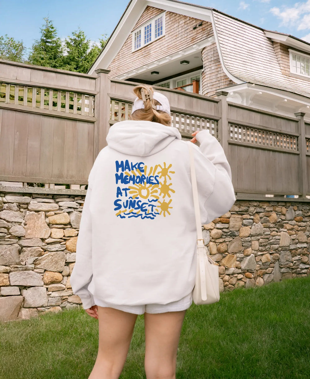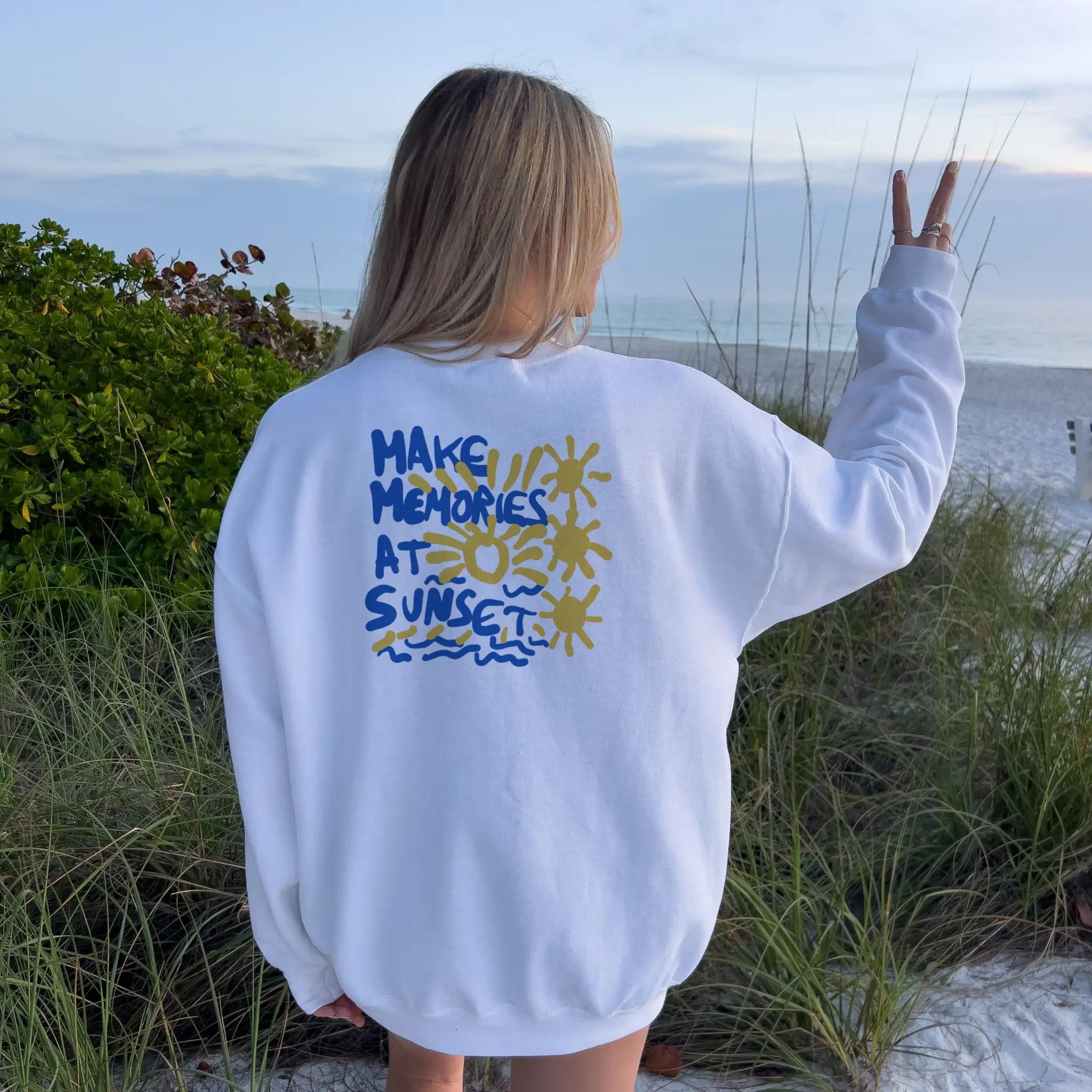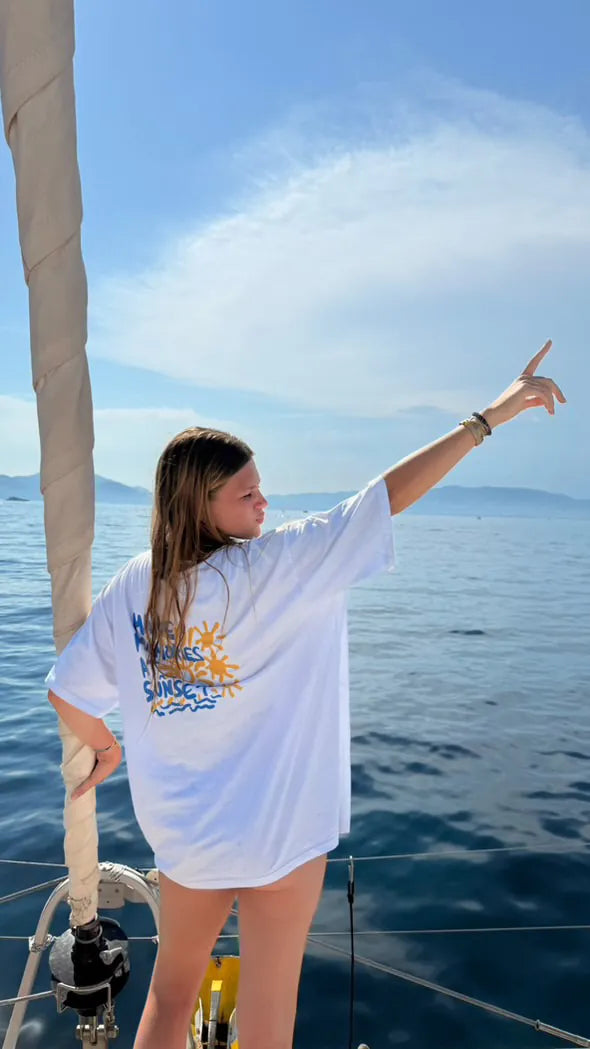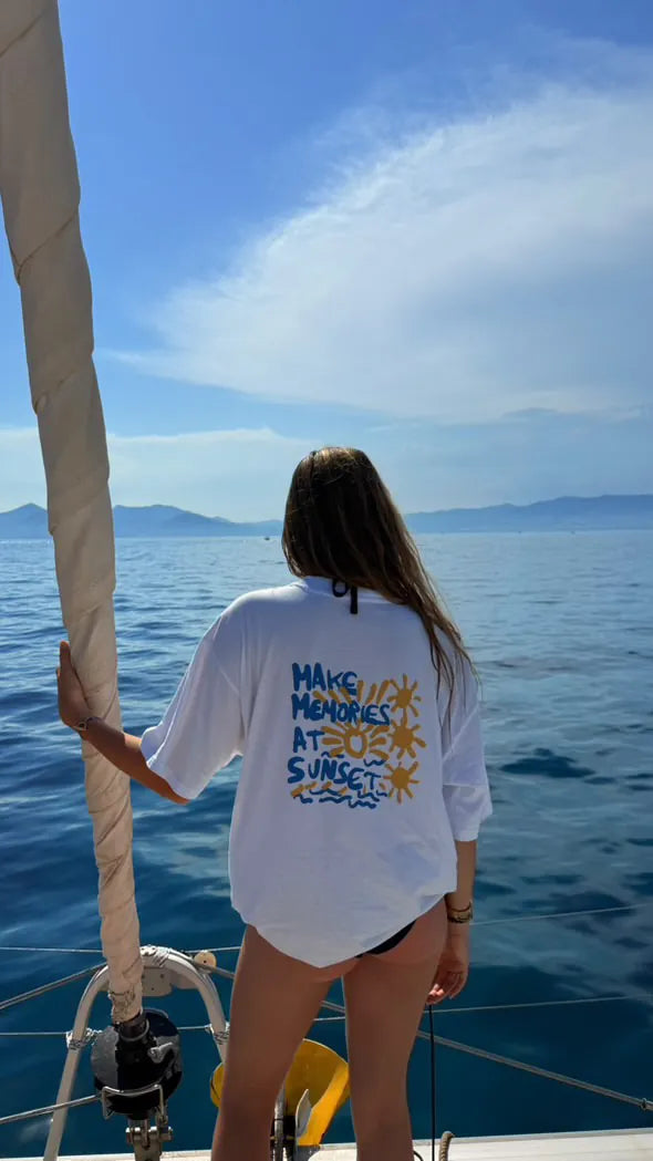 Nos pièces sont pensées comme des souvenirs : des t-shirts d’après-plage, des hoodies pour les soirs frais, des sweatshirts pour prolonger l’été quand la brise se lève.