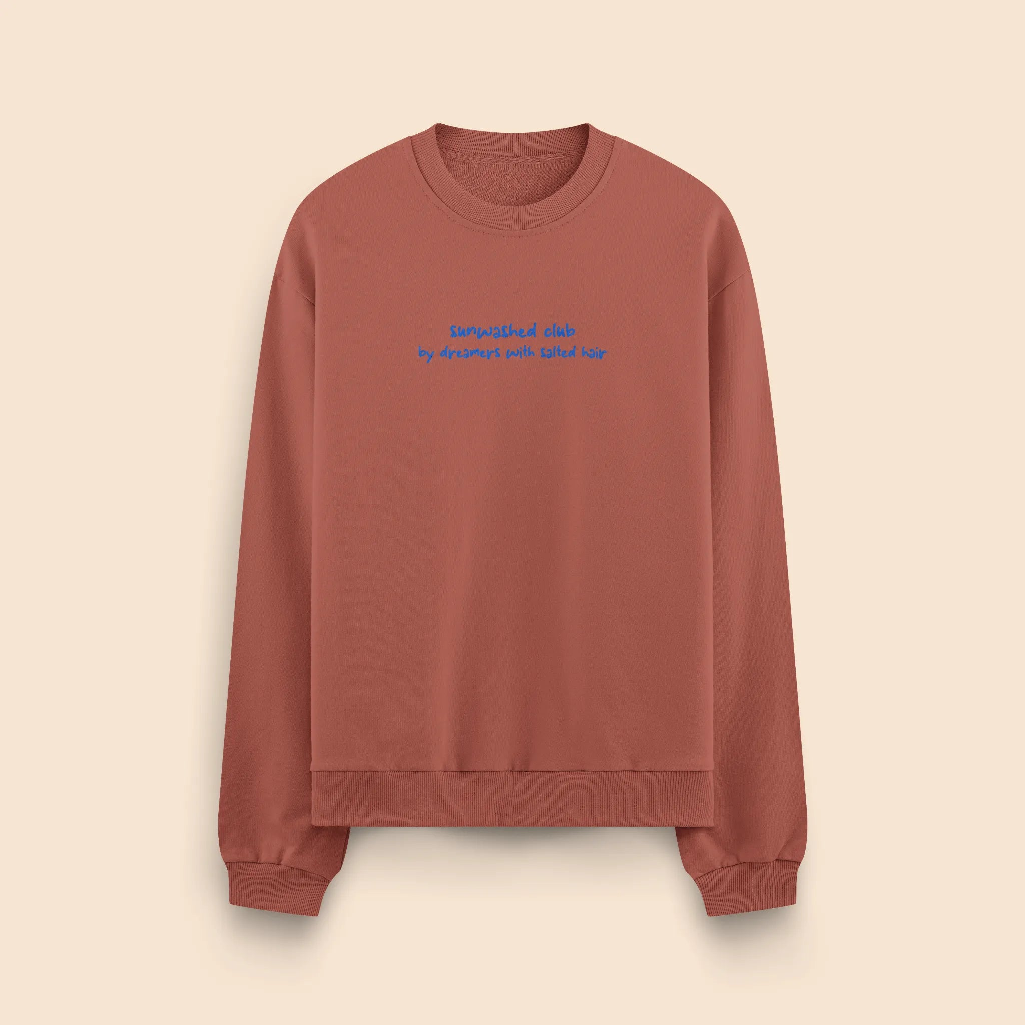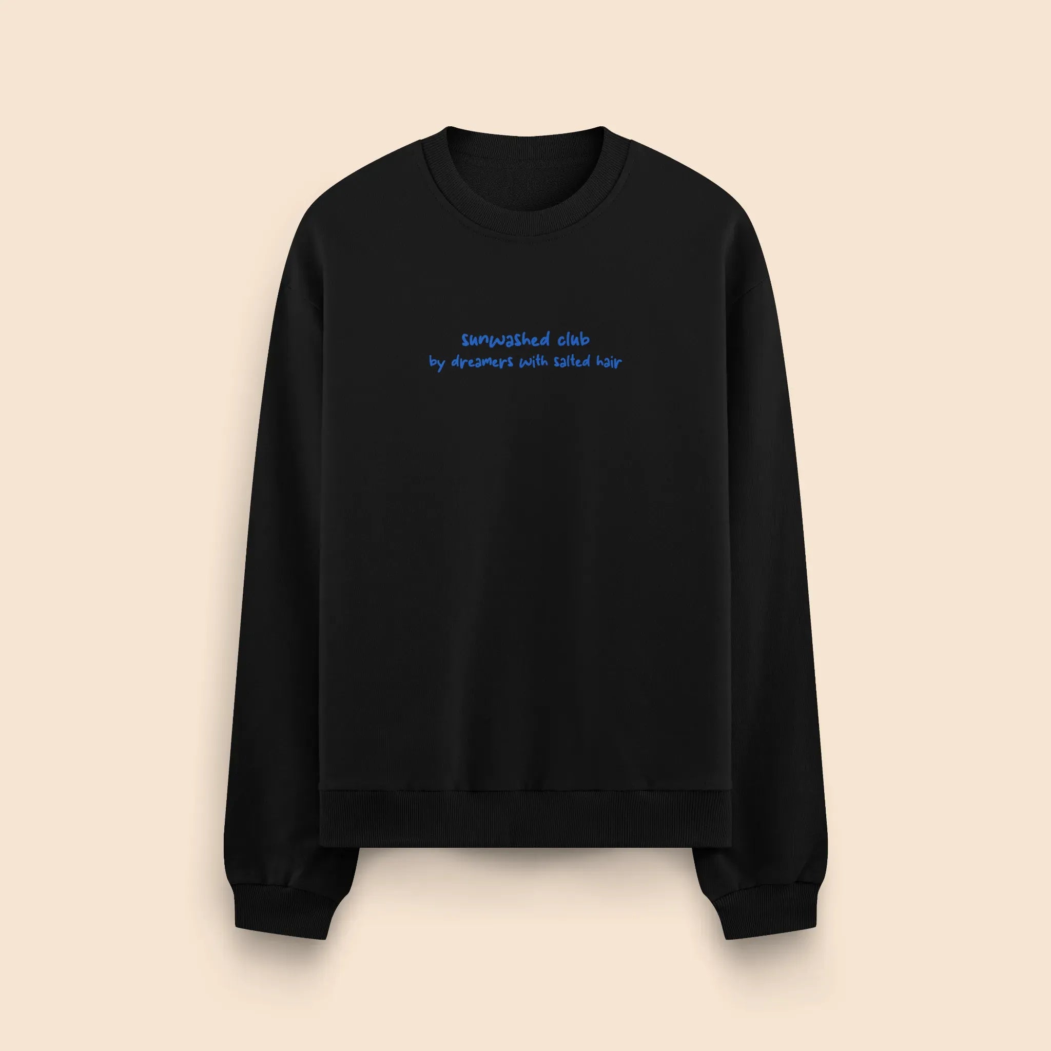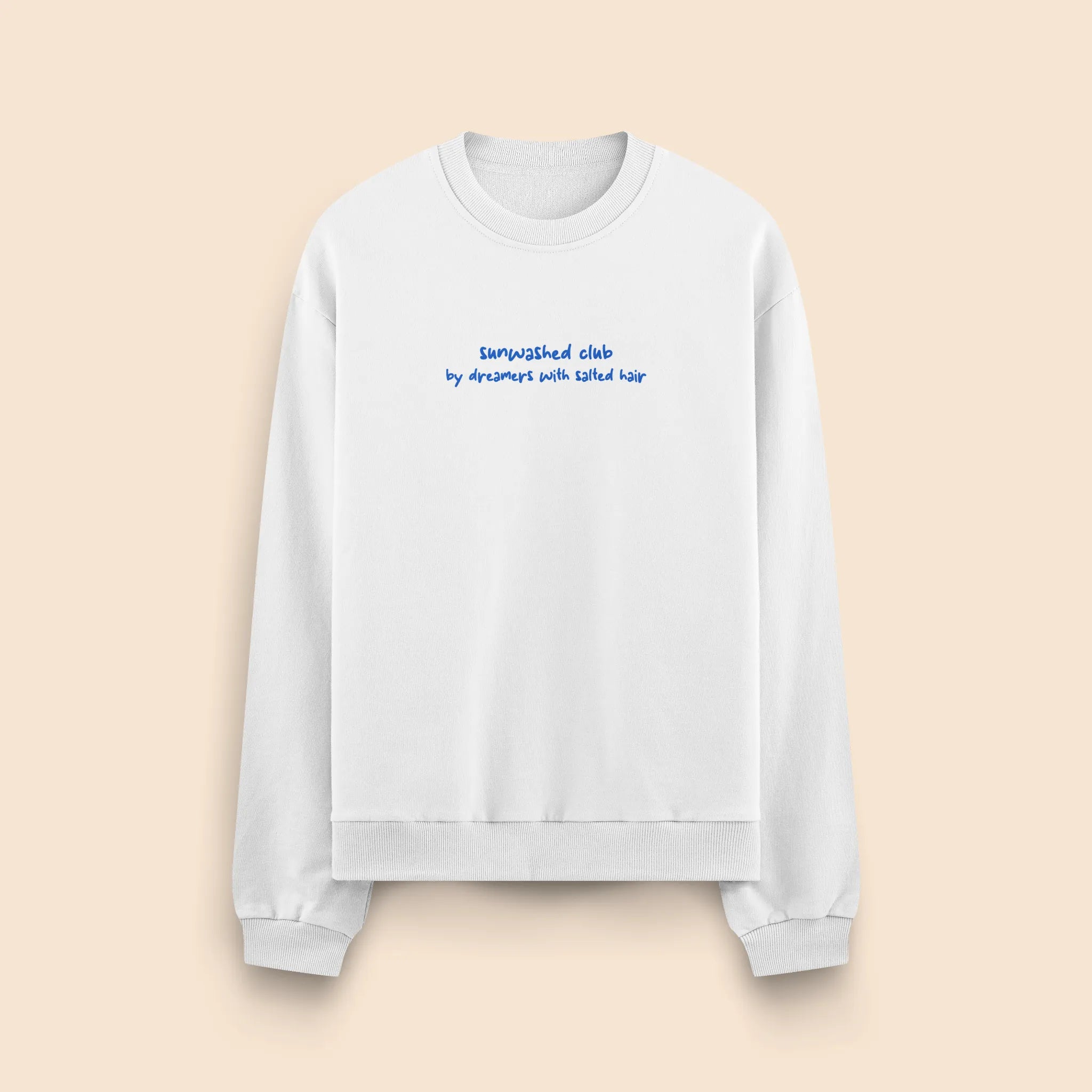 À l’avant, l’emblématique logo Sunwashed Club rappelle l’esprit rêveur de la marque : pour celles et ceux qui vivent au rythme des vagues et des couchers de soleil.
